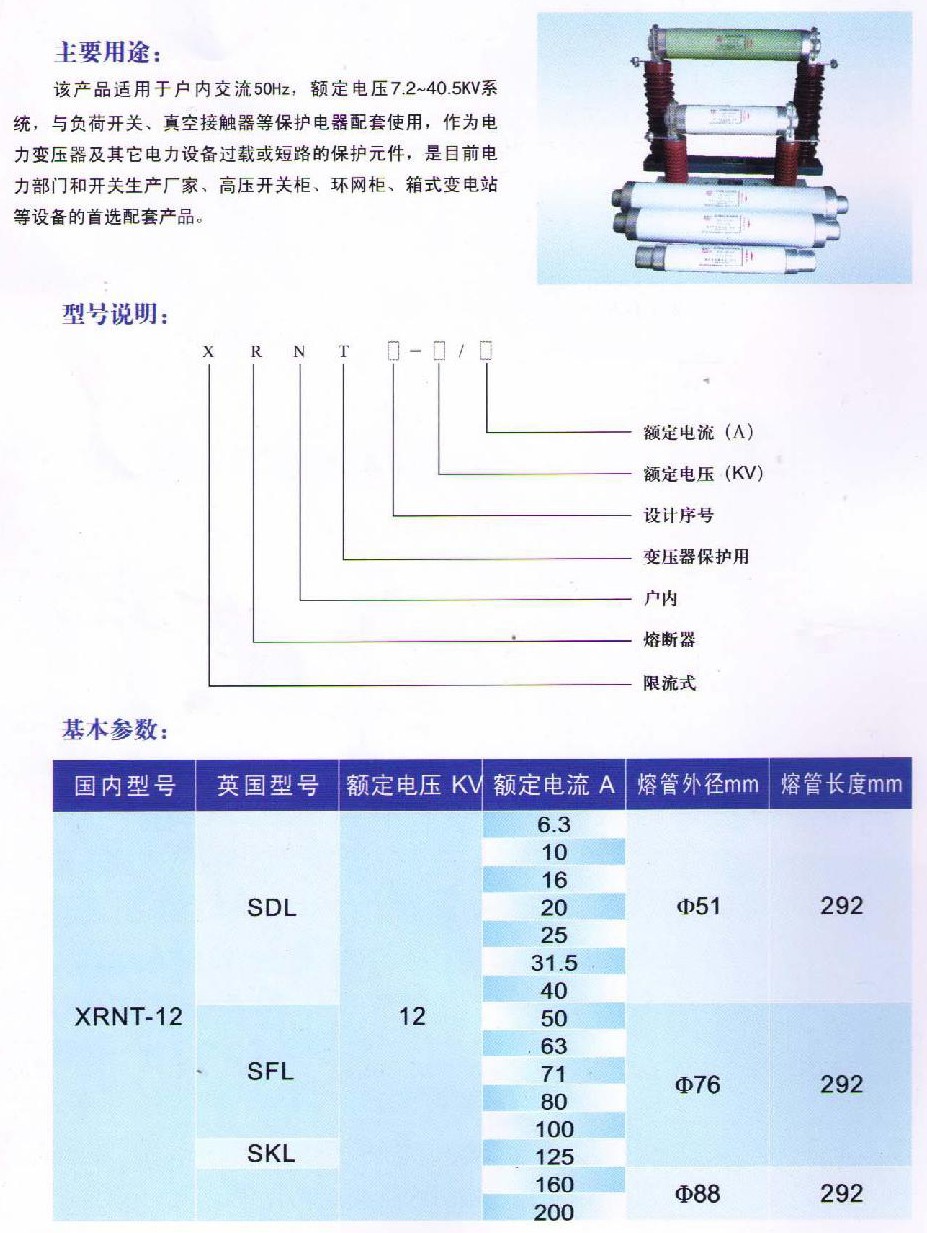 XRNT-12KV-變壓器保護用高壓限流熔斷器